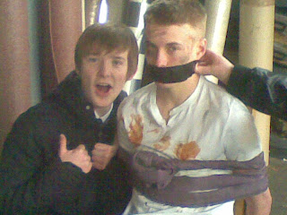 Within my media class, we are a group of friends so we had to split into two groups. However we help eachother out when it comes to filming our thriller openings. The pictures below are the other groups filming at a warehouse we managed to get.